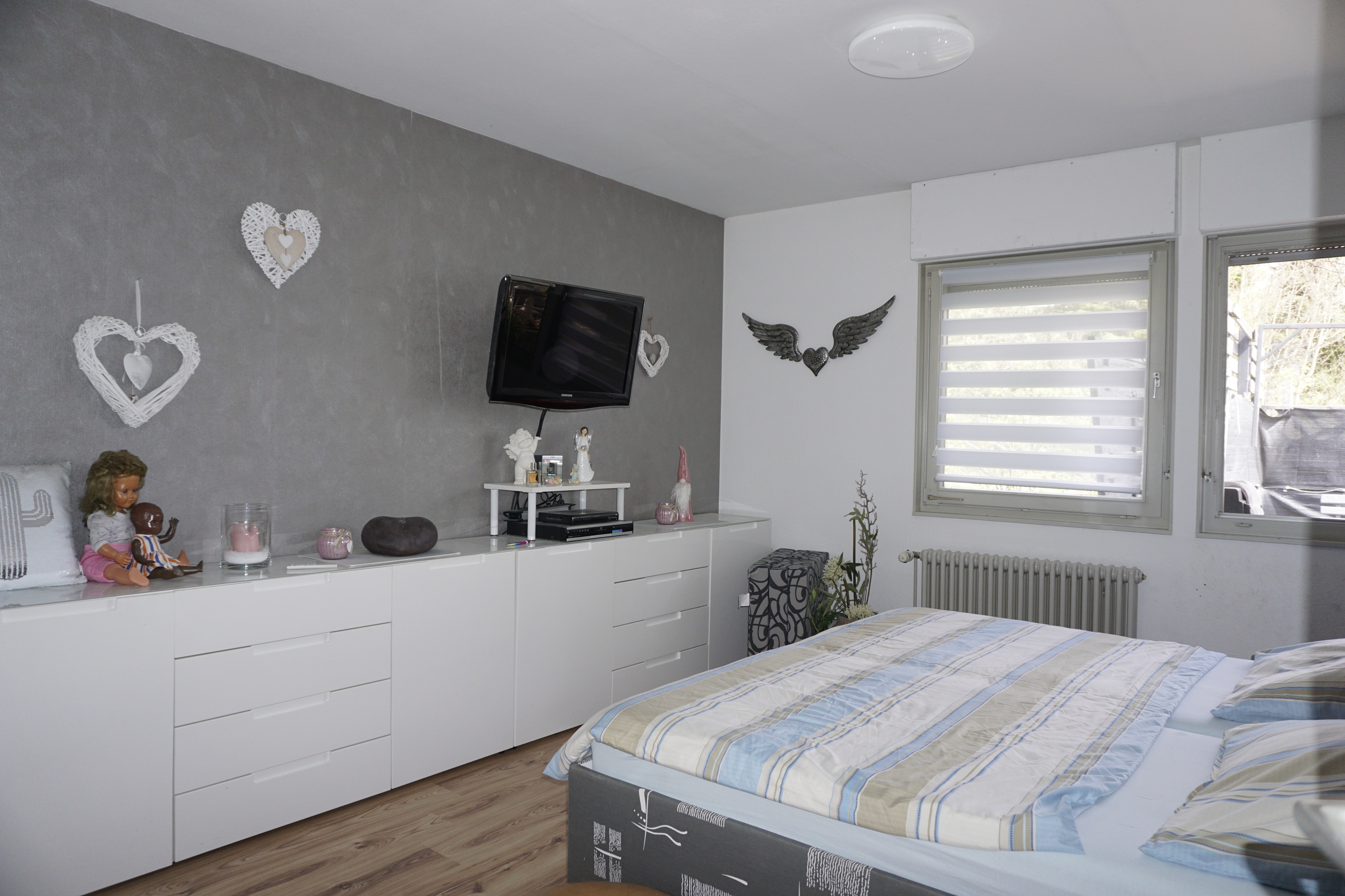 Das im Jahr 1972 in reizvoller Lage erbaute Haus – mit mehreren Wohnungen, verteilt im Dachgeschoss, der Hauptetage und dem ausgebauten Untergeschoss – mit einer gesamten Wohnfläche von 210m² besticht durch seine großzügige Bauweise und die ansprechende Satteldachkonstruktion. Auf einem 406m² großen Grundstück gelegen, verfügt die Immobilie über insgesamt 6 Schlafzimmer, 3 Badezimmer, eine Terrasse, einen Balkon, 4 Parkplätze und 2 Garagen. Die Außenstellplätze liegen vor den Garagen. Der Keller verfügt über einen Heiz- und Waschraum sowie eine Einliegerwohnung. Weitere Räumlichkeiten befinden sich im ausgebauten Dachgeschoss. Die Wohnungen sind separat zu erschließen. Einzig der Heiz- und Waschraum ist durch die Wohnung im Untergeschoss erreichbar. Die Fertigbauweise und die modernisierte Ausstattung verleihen dem Gebäude eine solide Basis. Trotz teilweisem Renovierungsbedarf besticht das Haus durch seine solide Ausstattung und sein großes Potenzial.