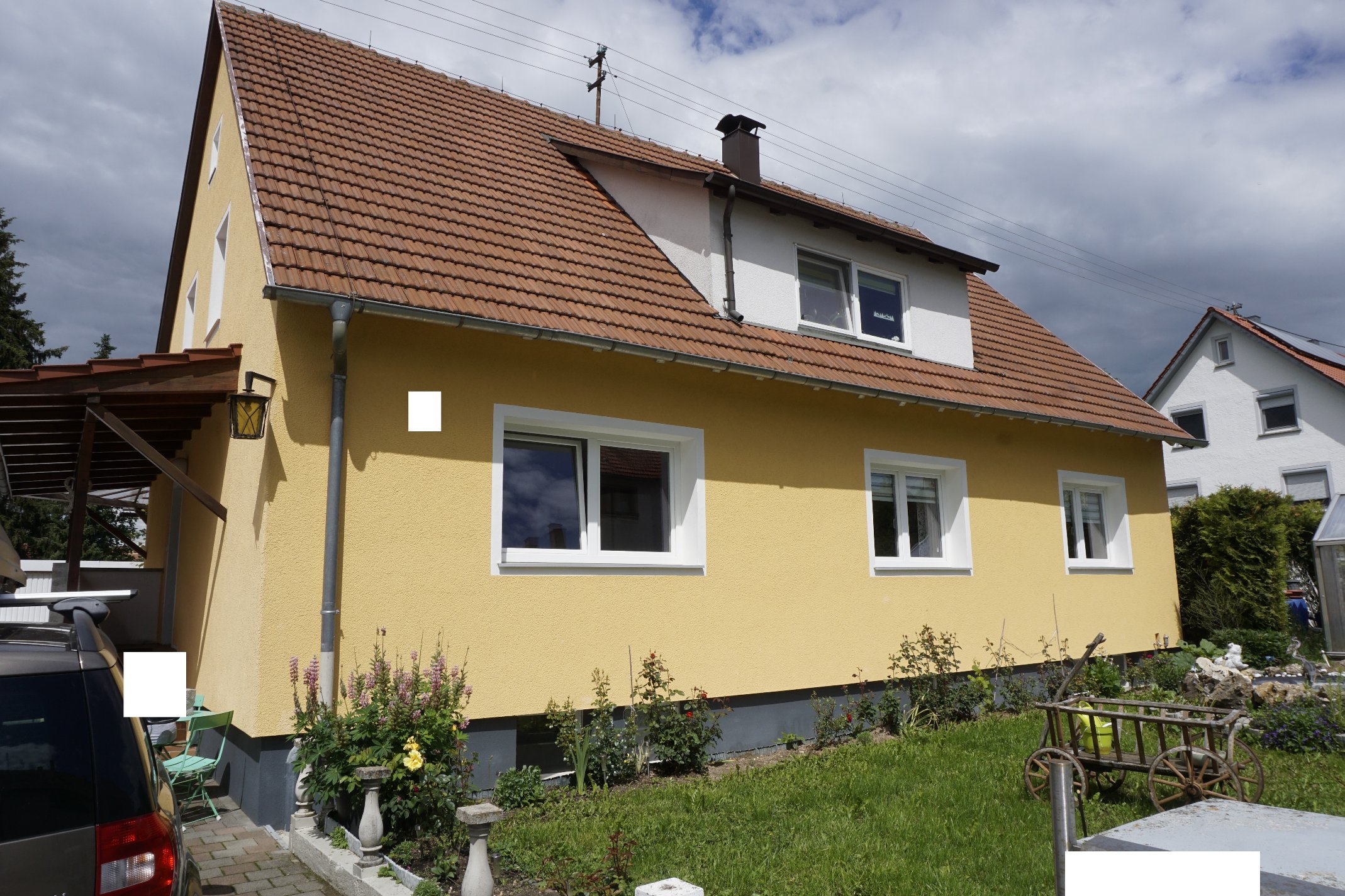 Die Immobilie ist voll unterkellert und verfügt über zwei Garagen neben dem Haus und über Stellplätze im Hof.