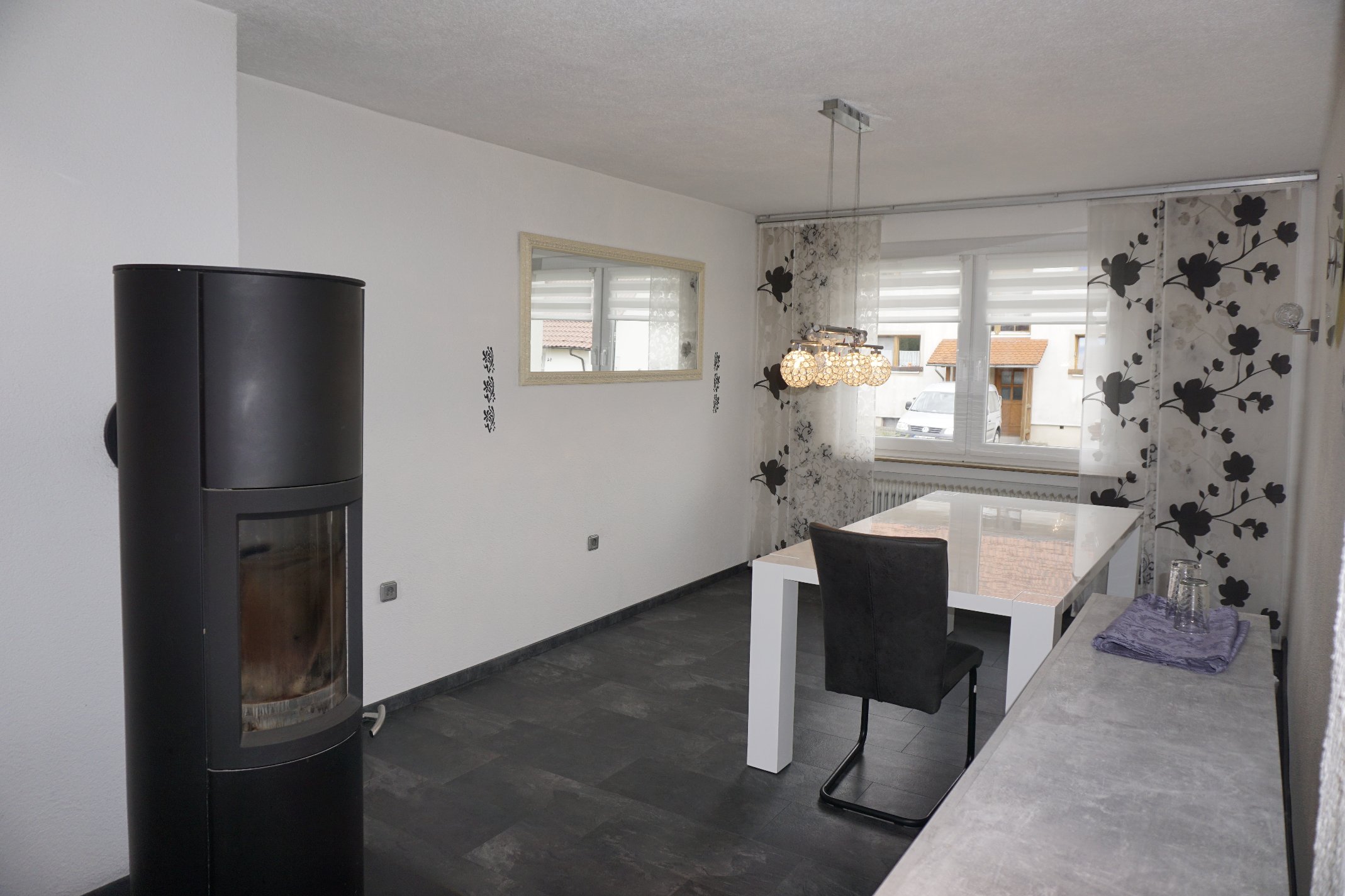 Das Wohn/Esszimmer verfügt über einen Kaminanschluss und einen Kaminofen, der zusätzlich wohlige Wärme spendet. Ein zusätzliches Büro/Kinderzimmer ist ebenfalls vorhanden. Weitere Wohn-/Schlafzimmer bieten Ihnen zusätzlichen Raum zur freien Entfaltung.